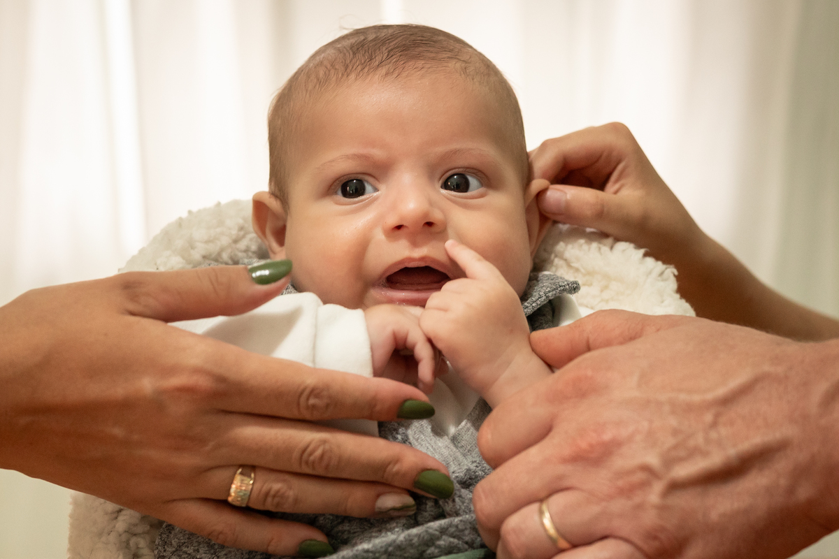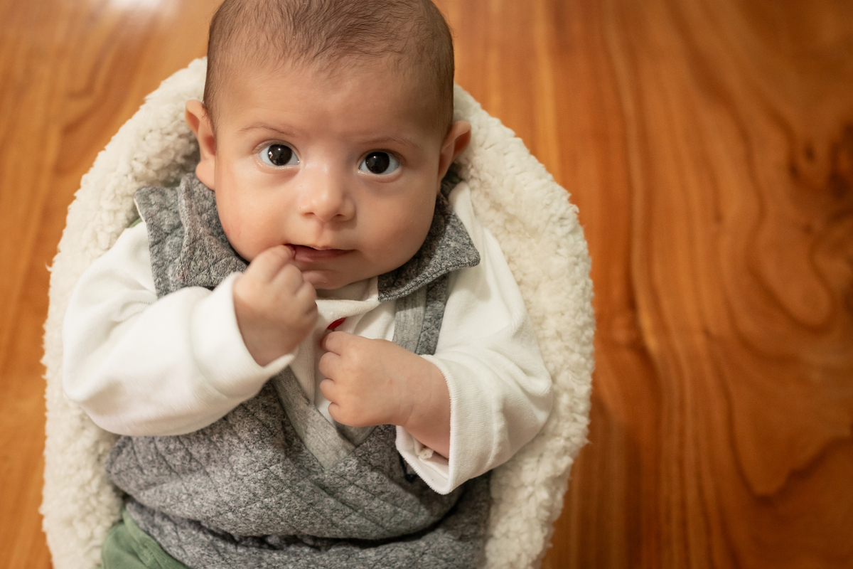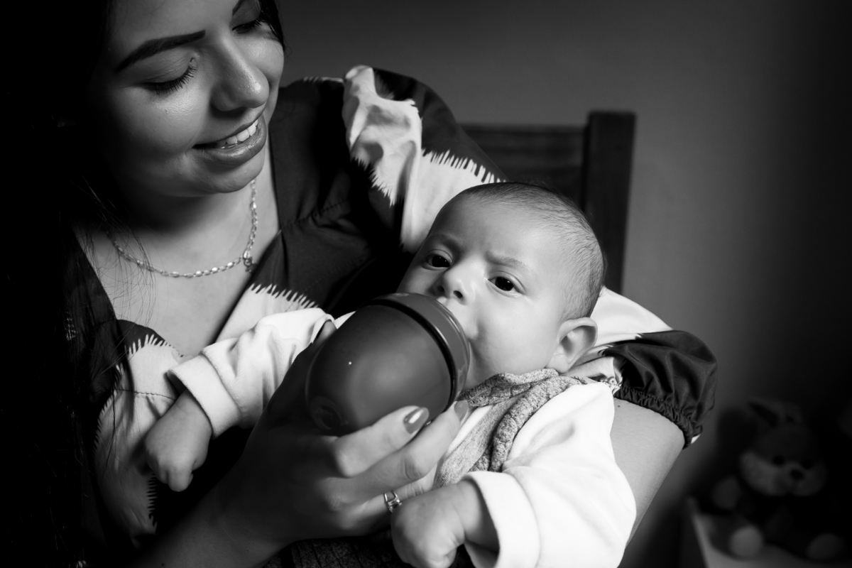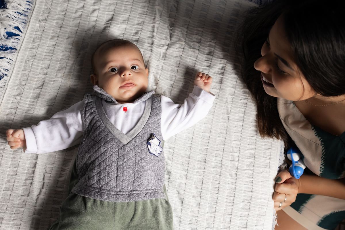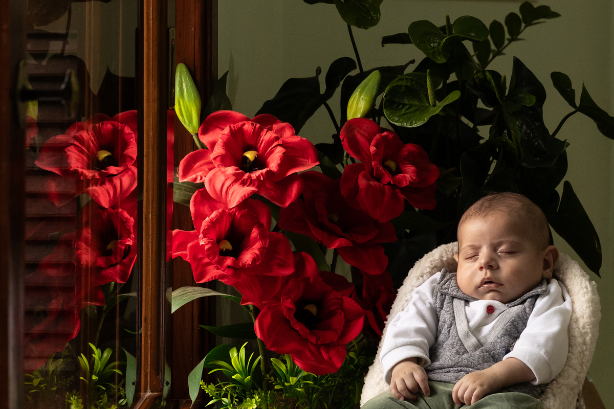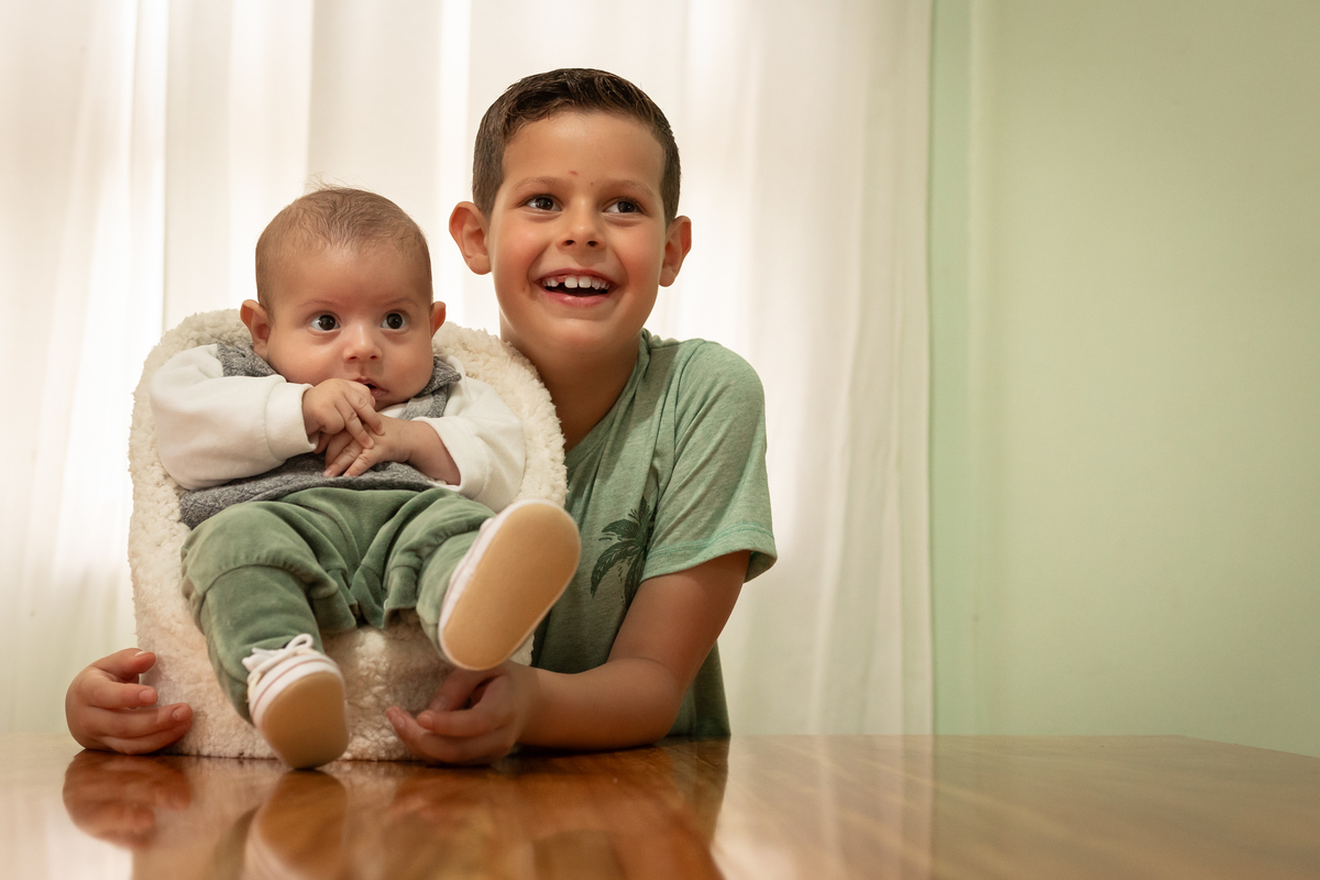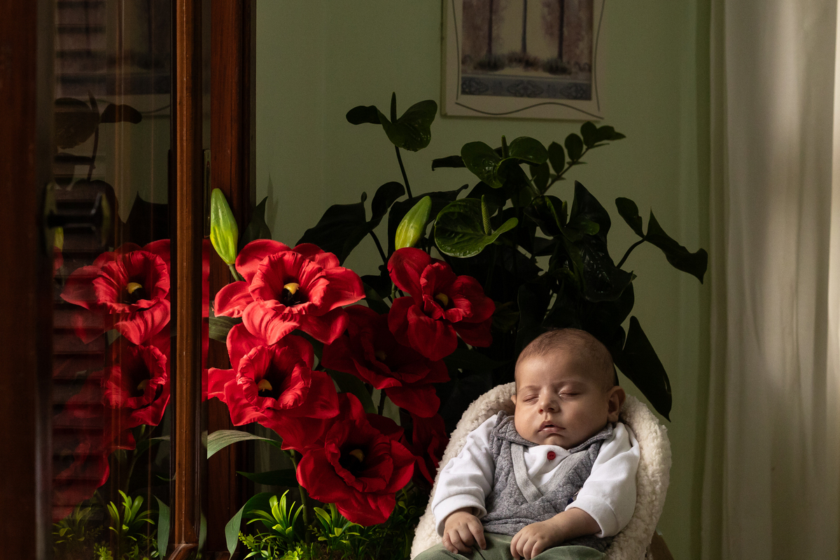 Essas fotos foram tiradas na casa do cliente, demonstrando como é possível capturar imagens incríveis no conforto do lar. Quando as fotos do bebê são feitas em casa, elas se tornam mais pessoais e personalizadas para cada família, conectando as imagens ao ambiente onde o bebê vai crescer.