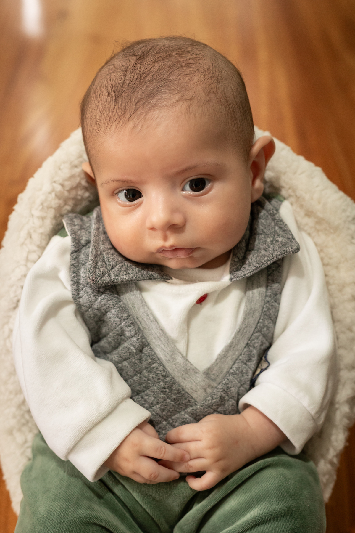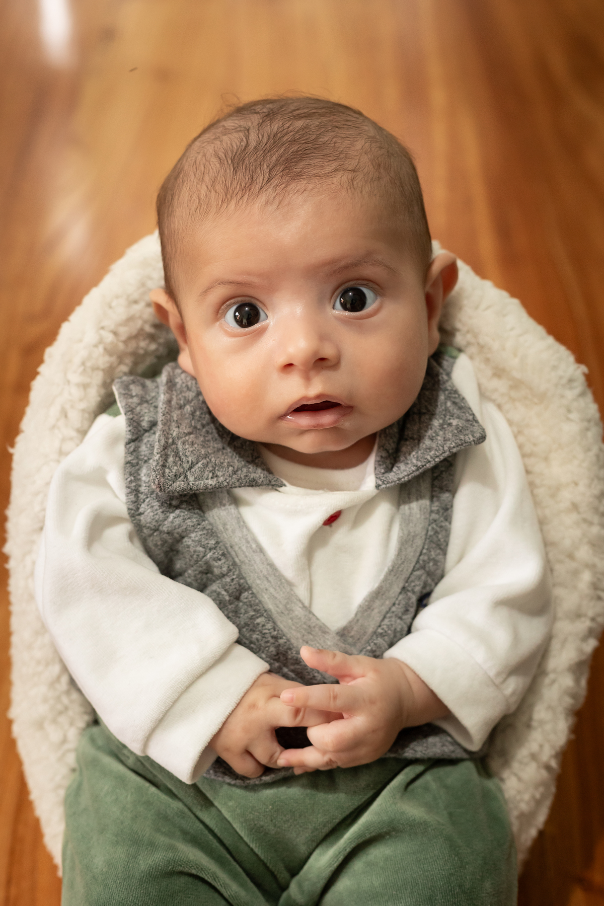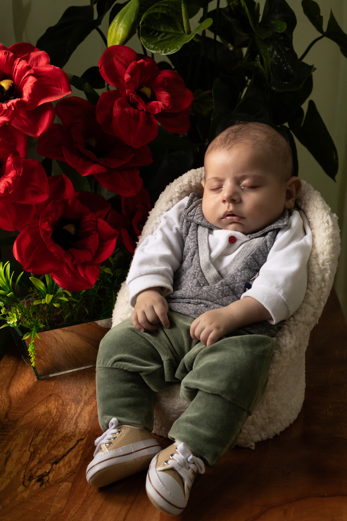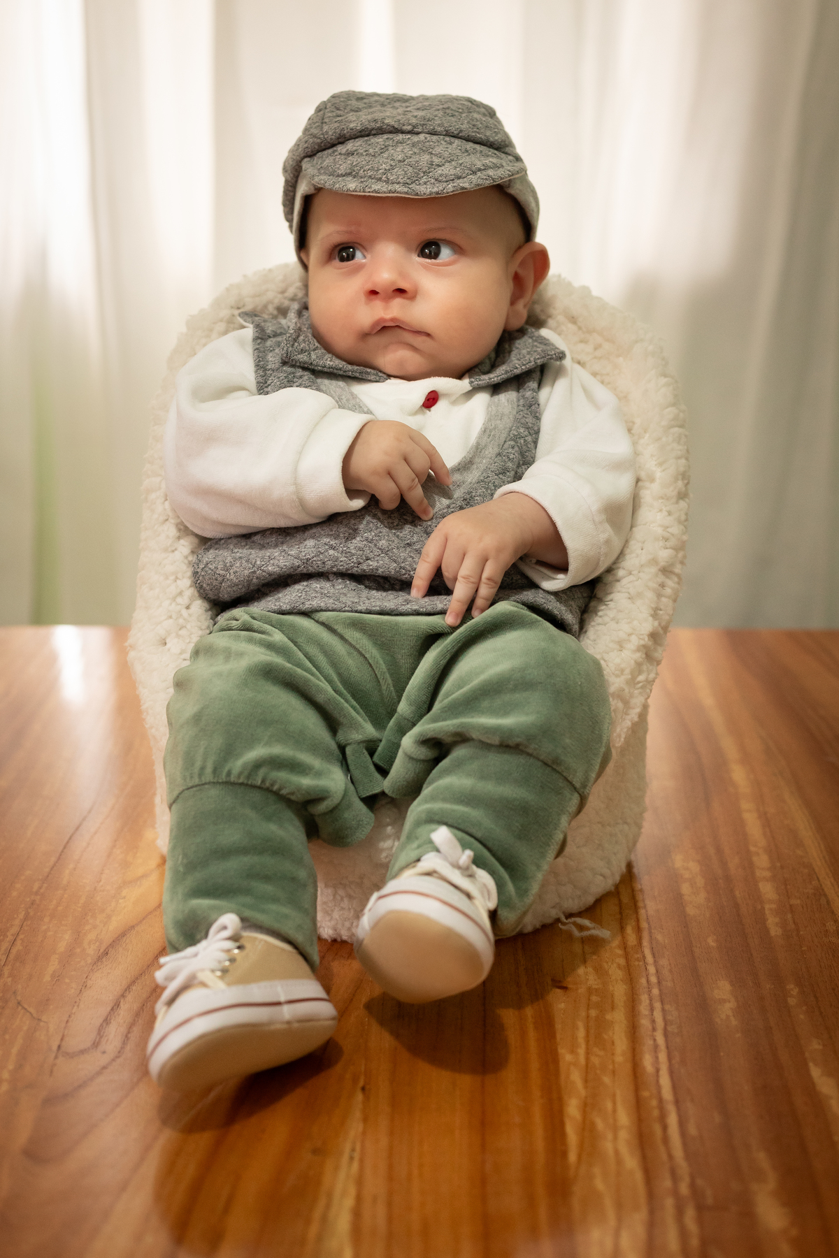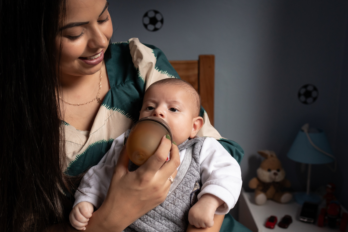 Essas fotos foram tiradas na casa do cliente, demonstrando como é possível capturar imagens incríveis no conforto do lar. Quando as fotos do bebê são feitas em casa, elas se tornam mais pessoais e personalizadas para cada família, conectando as imagens ao ambiente onde o bebê vai crescer.