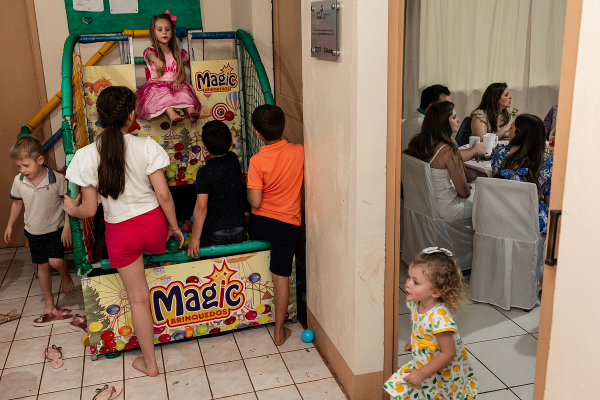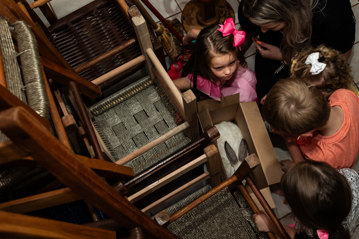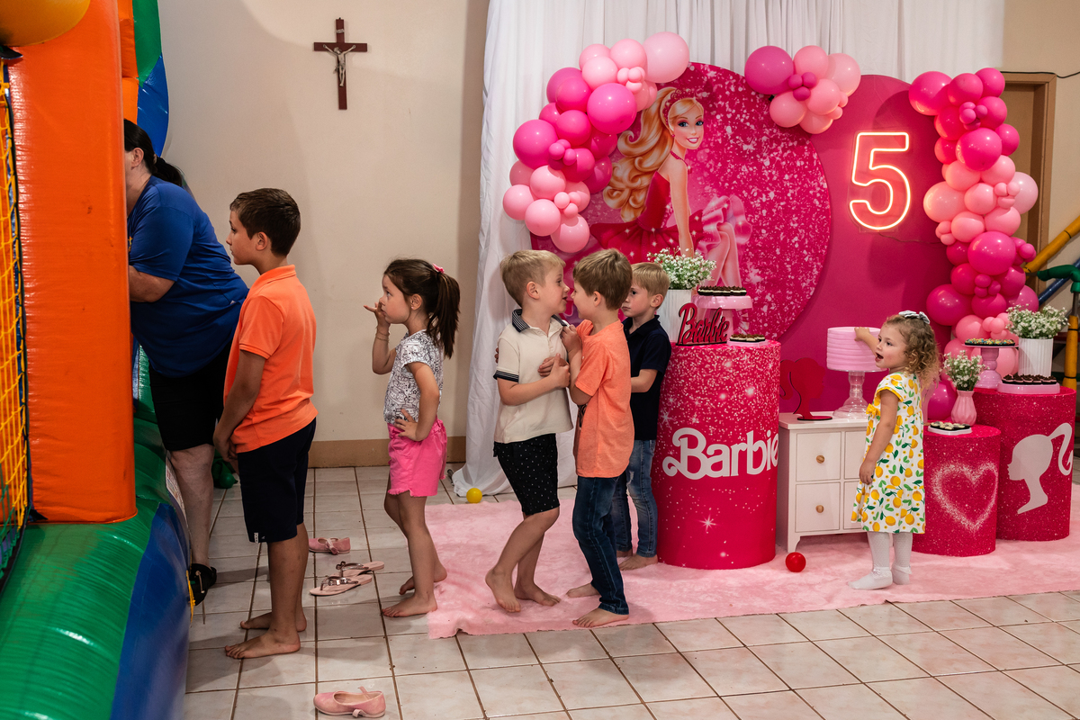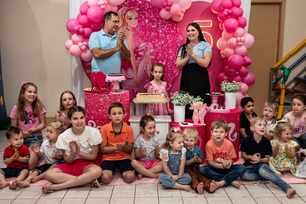 A festa de 5 anos da Eduarda foi pura alegria, música e gargalhadas. O ápice foi quando ela recebeu uma simples caixa de papelão que parecia nada demais, até revelar um coelhinho de verdade lá dentro. A surpresa encantou todo mundo — e, para alívio geral, o coelho escapou ileso das mãos animadas da criançada.